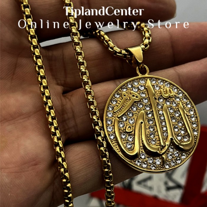 گردنبند الله نگیندار خط نستعلیق - طرح طلا (استیل ضدزنگ با آبکاری طلای ۱۸ عیار)