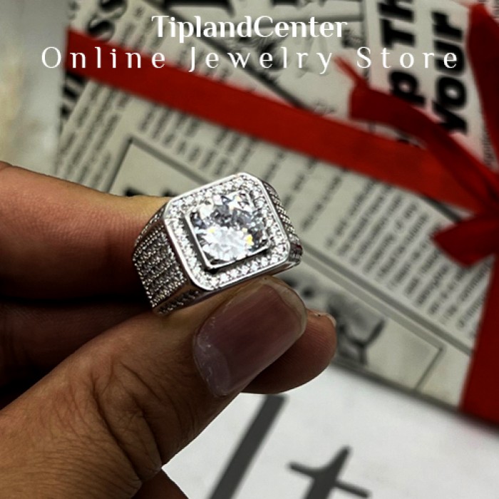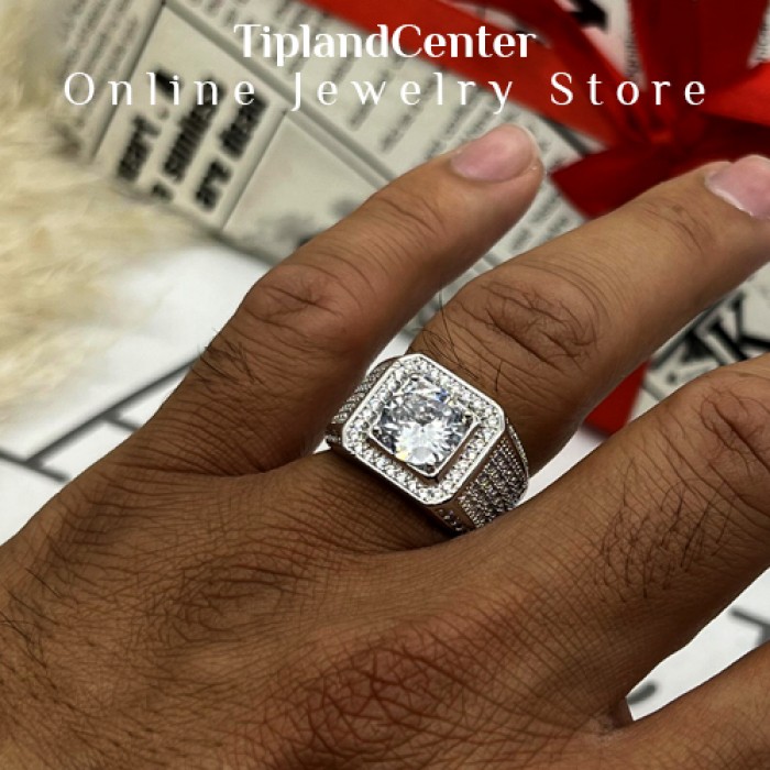 طرح جواهر ظریف و دقیق: نگینها و طراحی جواهرکاری شده با دقت بالا، جلوهای لوکس و مردانه به انگشتر داده است.
