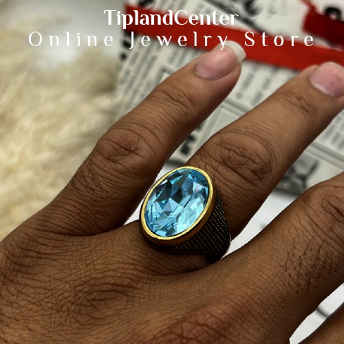 Men's Blue Gemstone Topaz Design Ring – Stainless Steel PVD Plated (Sizes 8, 9, 10, 11, 12)