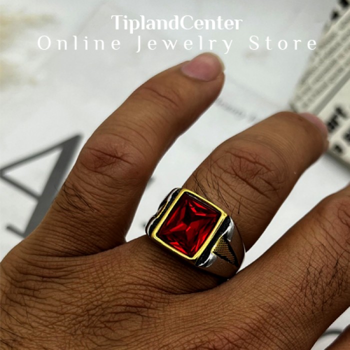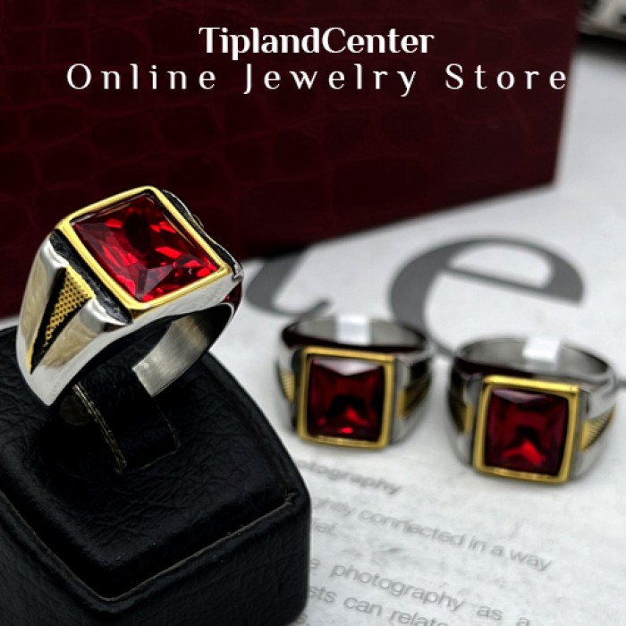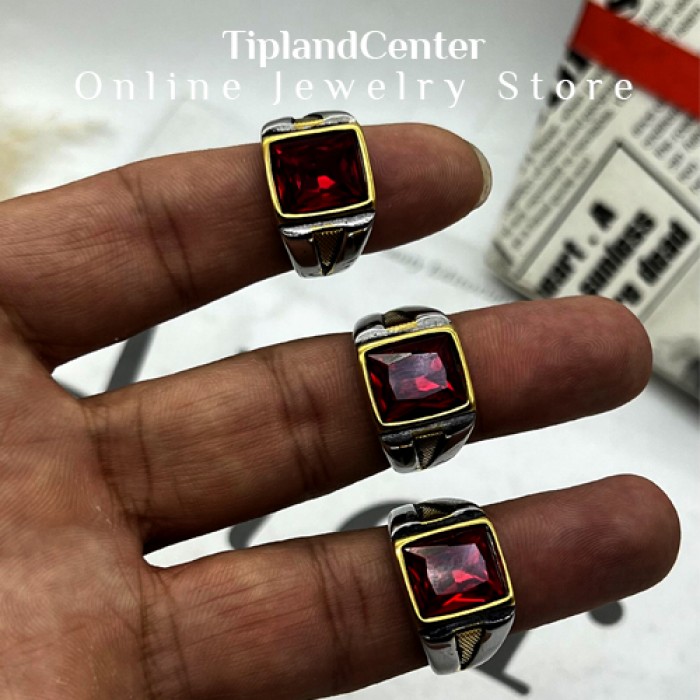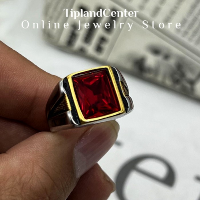 Men’s Two-Color Stainless Steel Ring in Gold with Red Gemstone