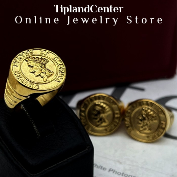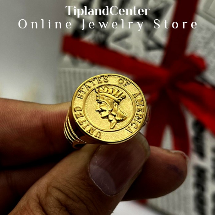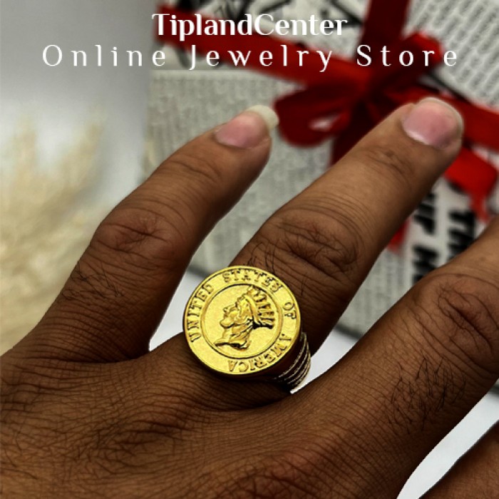 انگشتر طرح سکه آمریکایی لاکچری – مشابه طلا واقعی (استیل ضدزنگ با آبکاری طلای ۲۴ میکرون)