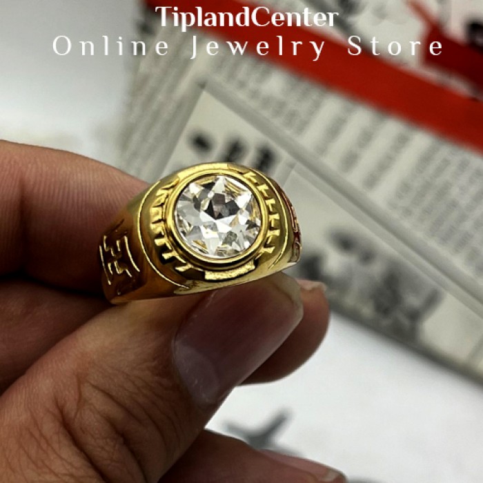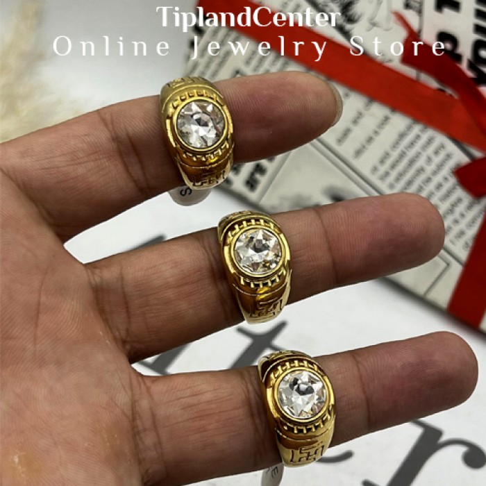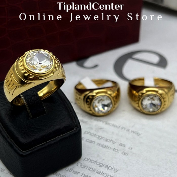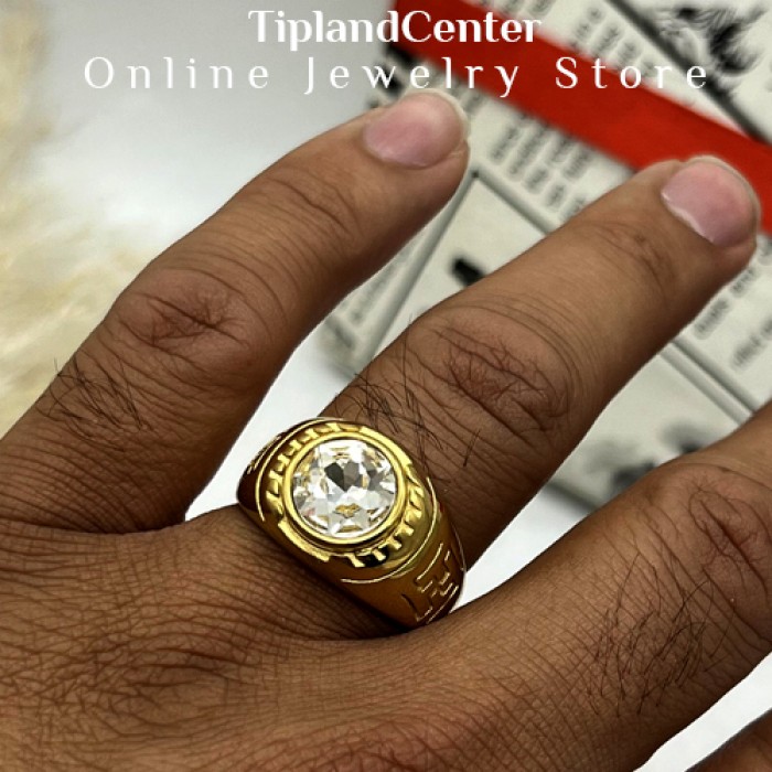 Men's Gold Plated Stainless Steel Ring with Diamond Design