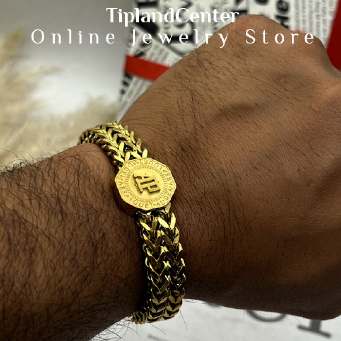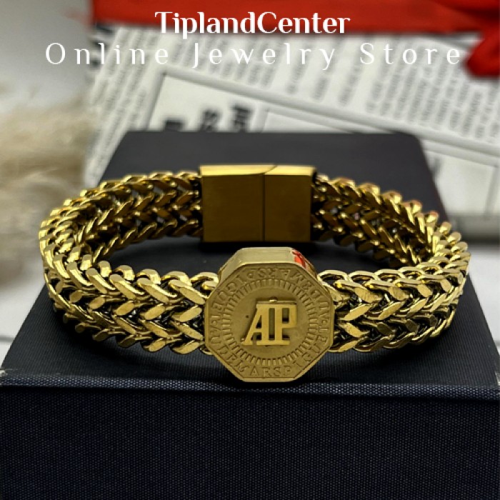 دستبند مردانه AP: استیل آبکاری طلا با قفل مگنتی کشویی اورجینال