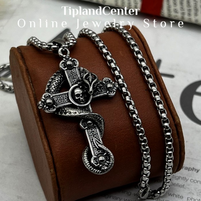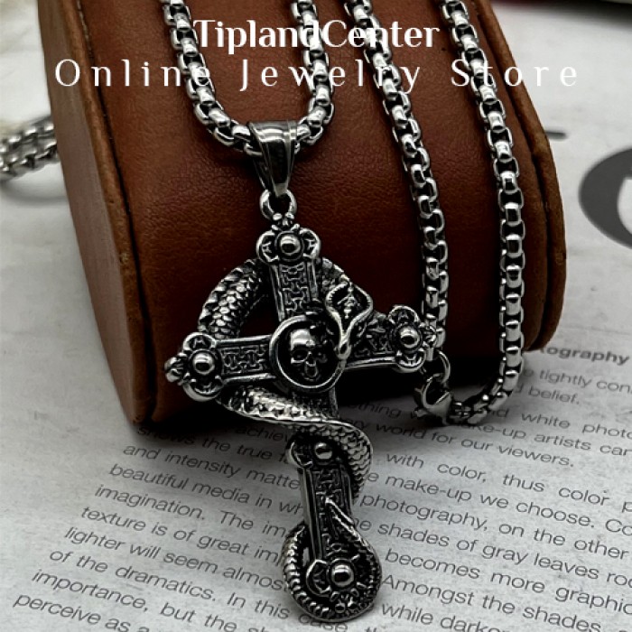 Dragon Skeleton Cross Necklace – Stainless Steel Gothic Pendant