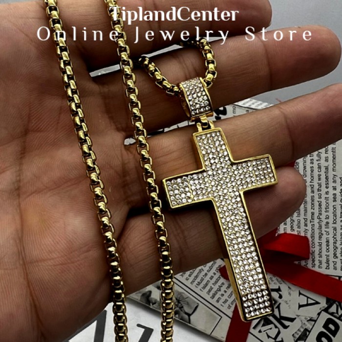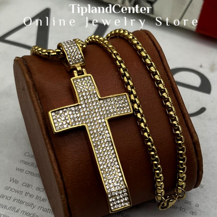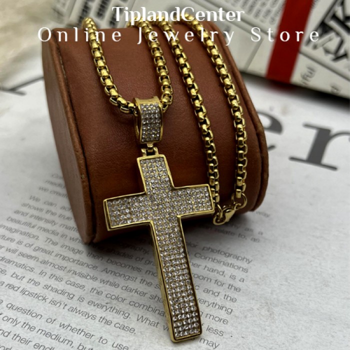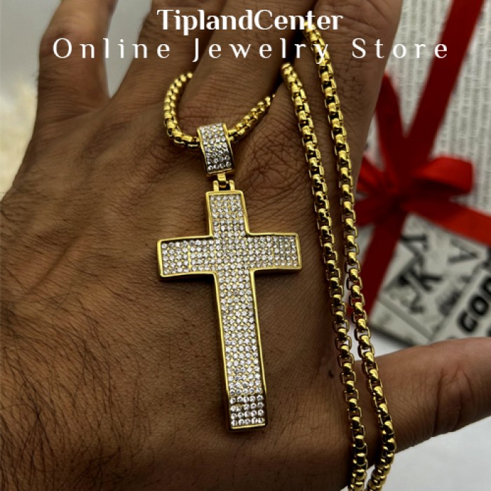 جنس این گردنبند از استیل ضد زنگ (فول استیل) بوده و رنگ طلایی آن با آبکاری باکیفیت، در برابر تغییر رنگ و خطوخش مقاوم است. نگینهای بهکاررفته در طرح صلیب، با درخششی مشابه الماس، جلوهای خاص به گردنبند دادهاند که در نور محیط یا زیر نور خورشید، به زیبایی میدرخشد.