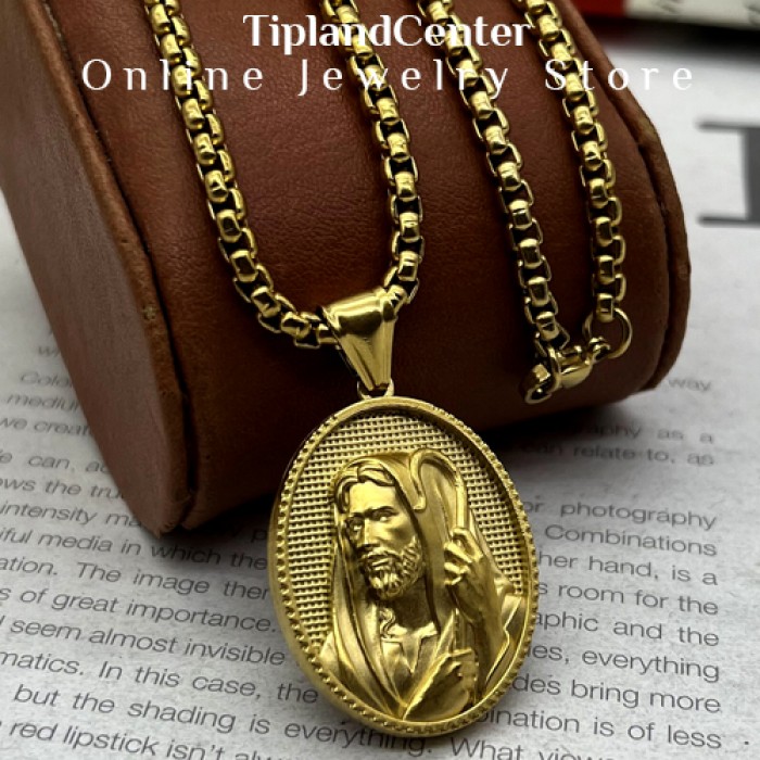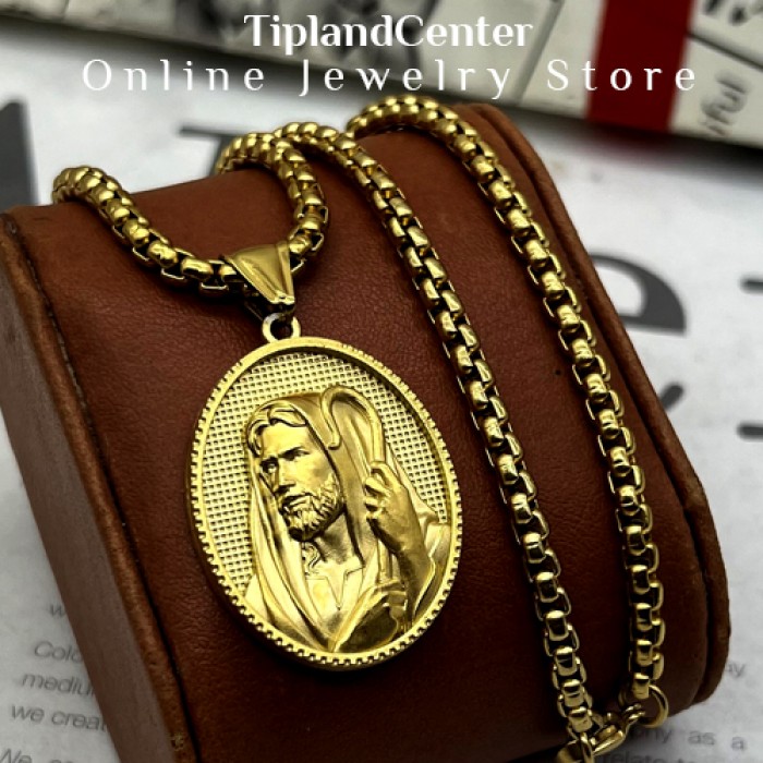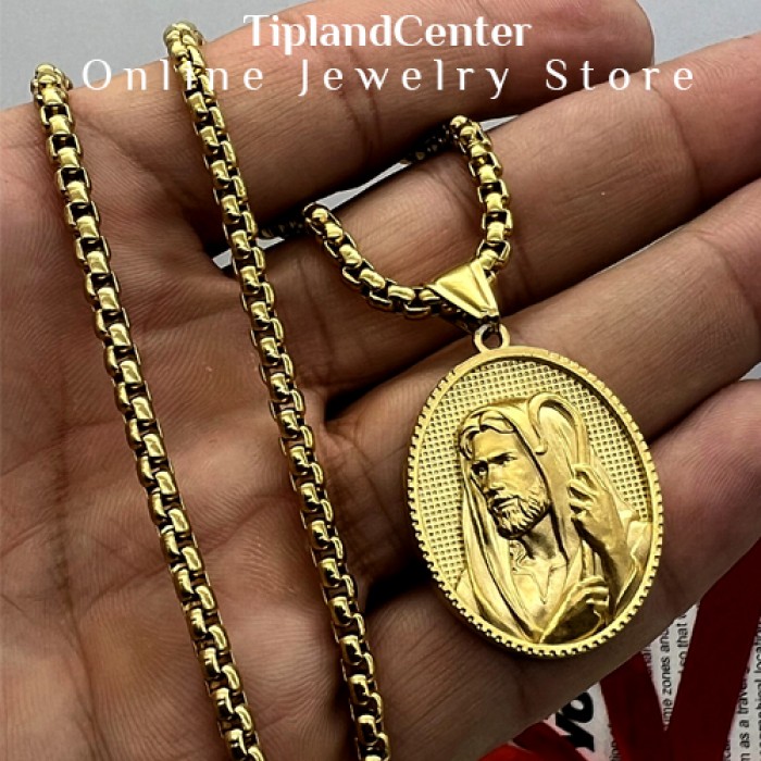 Jesus Pendant Necklace – Gold Plated Stainless Steel for Men