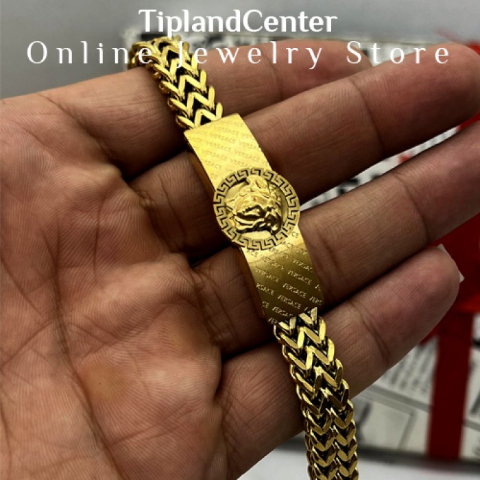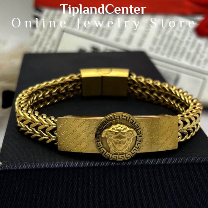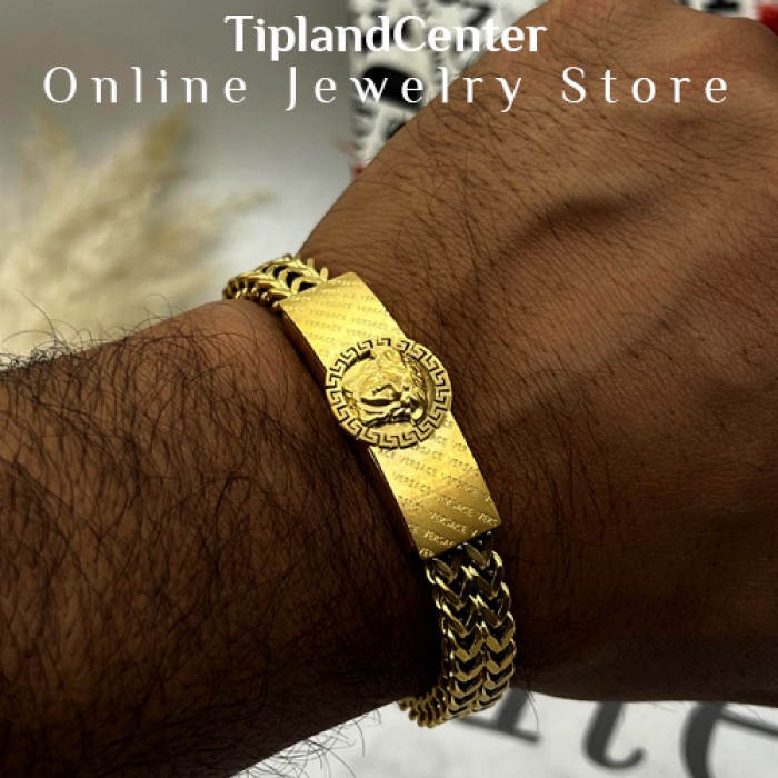 Versace Men's Gold Plated Steel Bracelet with Sliding Magnetic Clasp – 21cm